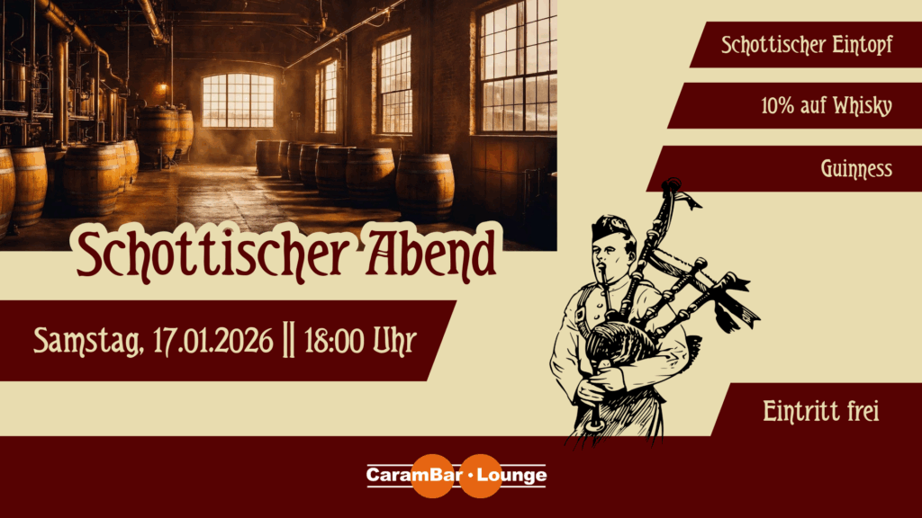 Genieße edle Whiskys, deftigen schottischen Eintopf und frisch gezapftes Bier.